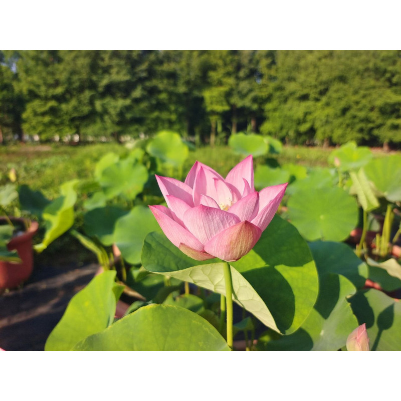 Le Nelumbo 'Poetic Legacy of Southern Dynasties' est un lotus de taille moyenne au charme classique, offrant des fleurs semi-doubles d'un rose délicat et une silhouette d'une grande distinction.