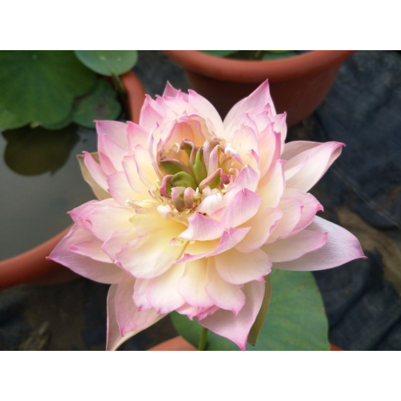 Particularité : Ce lotus se distingue par son aspect "froufrou" et sa palette de couleurs très apaisante. Il est parfait pour les amateurs de fleurs sophistiquées qui recherchent une pièce maîtresse visuelle pour leur bassin.