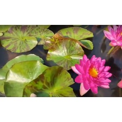 Bangkok Pink Panther (ou Pink Tiger) est un nymphéa spécial et rare au coloris rose avec des feuilles panachés de brun, tout a fait rustique !