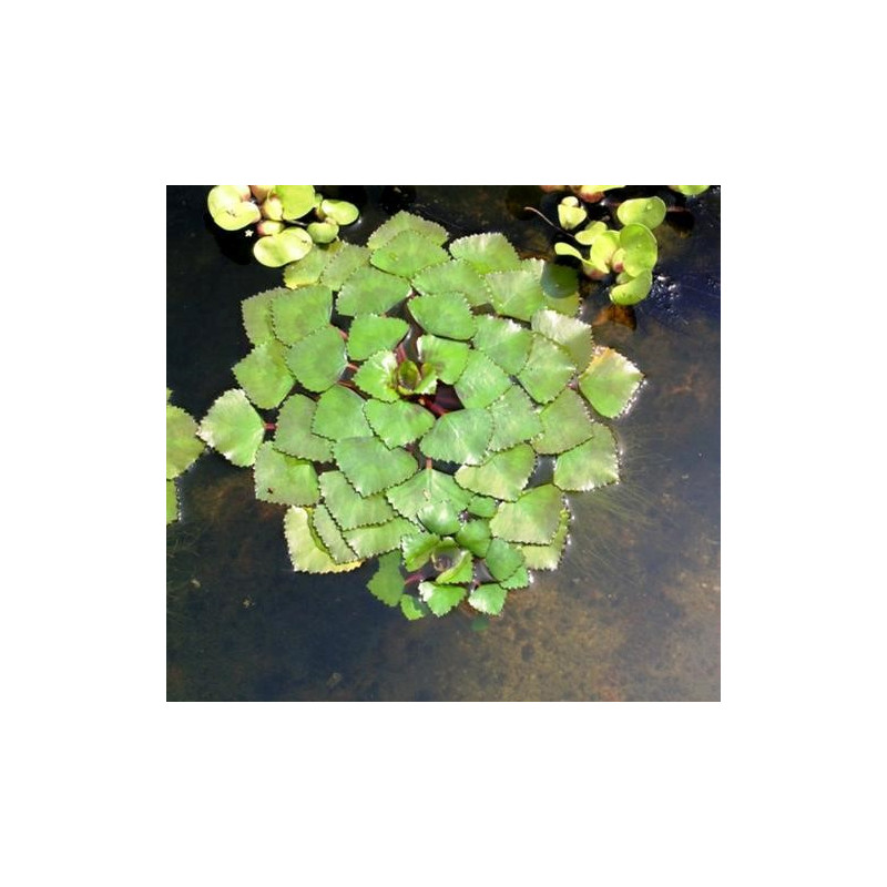 Apparence : Les feuilles en surface forment une rosette géométrique parfaite. Elles sont rhomboïdales (en forme de losange), dentées sur les bords et portées par des pétioles gonflés d'air qui servent de flotteurs.