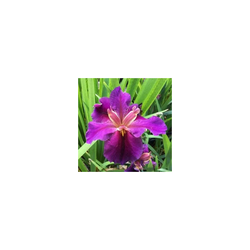 L'Iris 'Hurricane Party' est une variété de Louisiane captivante aux fleurs violettes veloutées marquées de jaune, idéale pour apporter de la profondeur et du caractère aux zones peu profondes de votre bassin.